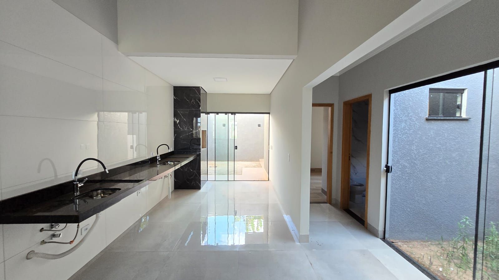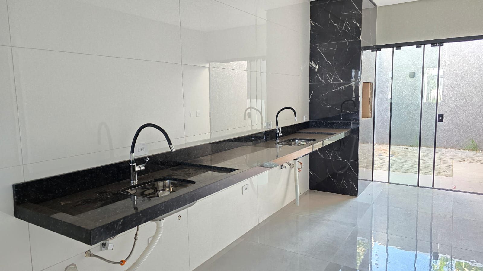 - Pias em granito na cozinha e banheiro.